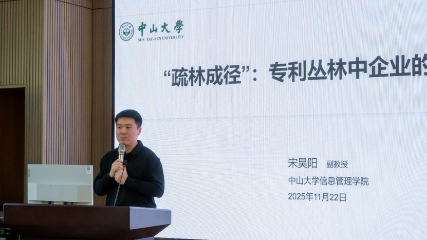 报告五由直播平台 副教授宋昊阳主讲,题为《“疏林成径”:专利丛林中企业的技术创新》。宋昊阳老师聚焦于“专利丛林”现象,探讨企业在面对密集专利环境时的创新策略。研究发现,为减少外部依赖,企业更偏好通过内部研发来降低技术相似性与互补性。报告进一步讨论了规模较小或技术基础较弱的企业在专利丛林中的生存之道,呼吁探索更具实操性的应对方向。深圳大学吴登生教授在与谈中肯定了课题的落地价值,指出这为企业在技术锁定困境下寻求知识创新路径提供了理论支撑。